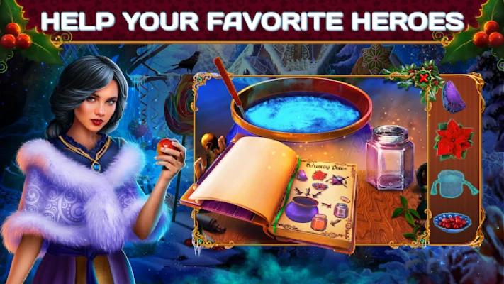 December brings us snowy weather, cozy evenings at home, and of course Christmas games! And there’s a great way to spend Christmas Eve, playing one of the best hidden object games - The Christmas Spirit: Grimm Tales Collector’s Edition! Your father, a famous fairytale writer Wilhelm Grimm, gets suddenly pulled inside one of his books right on Christmas Eve! All alone, you play some seek and find games free and explore your house and the Christmas tree to find objects and a magical mirror that helps you communicate with your father in the Fairyland, and he says the news is worrying. Dame Gothel decided to play search and find games to free her beloved Rumpelstiltskin, a dangerous criminal! They both are planning to release all the other criminals and ban Christmas in the Fairytale Land! Are you brave enough to find hidden objects that you need in order to go to the Fairyland and confront Dame Gothel and Rumpelstiltskin? Can you also save your Dad and return back to the real world? Challenge yourself in this festive and bright object finding games!