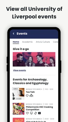The My Liverpool app is designed to enhance your experience whilst studying at the University of Liverpool. The app gives you the ability to view events, create a personalised planner and access information and support.