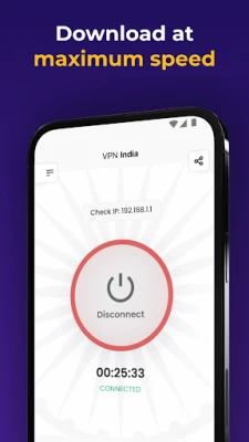 + For your convenience, we introduced two separate connection buttons. The first connects to a selected VPN in the list. The second connects directly to a Indian VPN. It's that simple. In case you need to change IP address, just select a server in some other country and establish a connection. In case you need to get a Indian IP address, just connect to a Indian VPN server in one click.